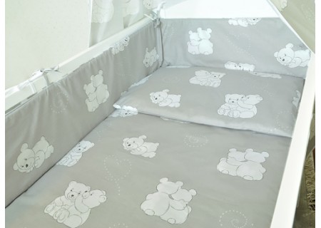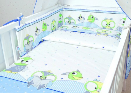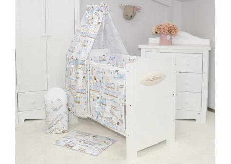 3. Ochraniacz na szczebelki 180 x 20 cm – zapewnia skuteczną ochronę główki dziecka, ponieważ został wykonany ze sztywnej prasowanej włókniny o grubości ok.2 cm. Dzięki swojej sztywności i grubości dobrze zabezpiecza przed uderzeniami o szczebelki. Ochraniacz posiada troczki mocujące do łóżeczka, które zostały uszyte z takiego samego koloru co pościel. Ochraniacz wykonany w systemie EASY WASH, który pozwala na łatwe utrzymanie go w czystości. Pokrowiec ochraniacza wyposażony jest w suwak, aby wyjąć z niego wypełnienie. Pokrowiec można łatwo prać w pralce, a potem wysuszyć i wyprasować, aby cały ochraniacz wyglądał jak nowy.