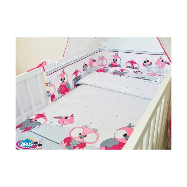 ARUŚ 5 el. pościel do łóżeczka 120*90 (33-rozowe sowy NOWE)