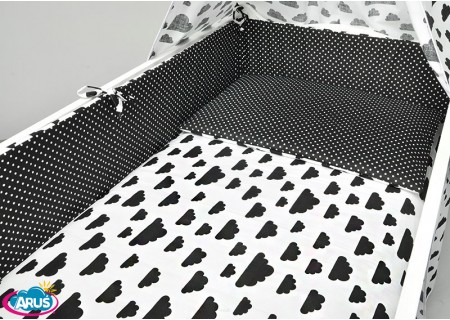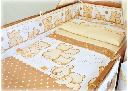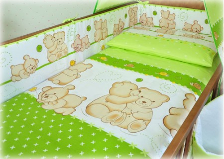 3. Ochraniacz na szczebelki 180 x 20 cm – zapewnia skuteczną ochronę główki dziecka, ponieważ został wykonany ze sztywnej prasowanej włókniny o grubości ok.2 cm. Dzięki swojej sztywności i grubości dobrze zabezpiecza przed uderzeniami o szczebelki. Ochraniacz posiada troczki mocujące do łóżeczka, które zostały uszyte z takiego samego koloru co pościel. Ochraniacz wykonany w systemie EASY WASH, który pozwala na łatwe utrzymanie go w czystości. Pokrowiec ochraniacza wyposażony jest w suwak, aby wyjąć z niego wypełnienie. Pokrowiec można łatwo prać w pralce, a potem wysuszyć i wyprasować, aby cały ochraniacz wyglądał jak nowy.
