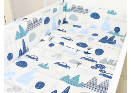 3. Ochraniacz na szczebelki 180 x 20 cm – zapewnia skuteczną ochronę główki dziecka, ponieważ został wykonany ze sztywnej prasowanej włókniny o grubości ok.2 cm. Dzięki swojej sztywności i grubości dobrze zabezpiecza przed uderzeniami o szczebelki. Ochraniacz posiada troczki mocujące do łóżeczka, które zostały uszyte z takiego samego koloru co pościel. Ochraniacz wykonany w systemie EASY WASH, który pozwala na łatwe utrzymanie go w czystości. Pokrowiec ochraniacza wyposażony jest w suwak, aby wyjąć z niego wypełnienie. Pokrowiec można łatwo prać w pralce, a potem wysuszyć i wyprasować, aby cały ochraniacz wyglądał jak nowy.