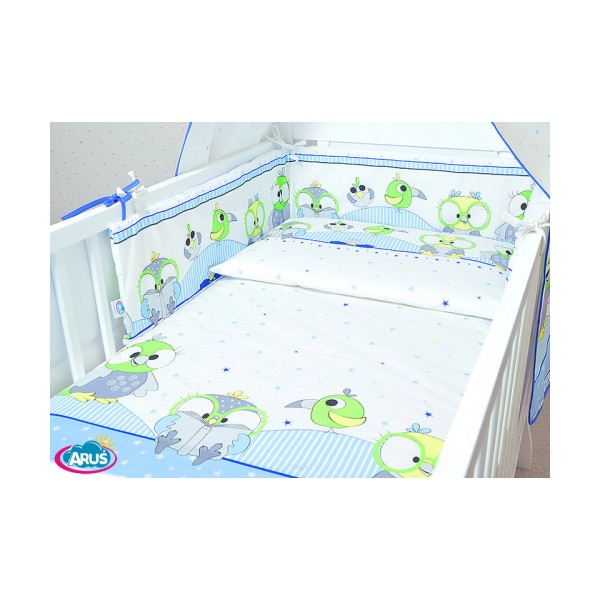 ARUŚ 7 el. pościel do łóżeczka 120*90 (29-niebieskie sowy NOWE)
