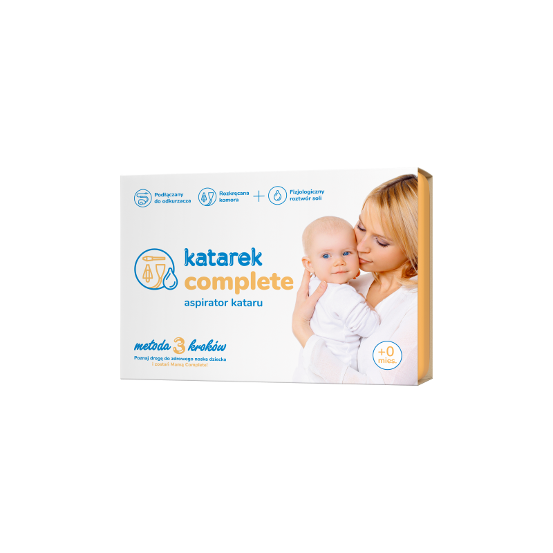 Katarek Complete to kompleksowe rozwiązanie do walki z katarem oparte o rekomendowaną przez lekarzy Metodę 3 Kroków (rozrzedzanie, odciąganie, nawilżanie).