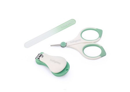 Kompletny zestaw do pielęgnacji paznokci niemowląt. Higieniczne, wykonane ze stali nierdzewnej nożyczki i cążki do obcinania paznokci oraz szklany pilniczek do wygładzania nierówności. Wszystkie elementy zestawu zapakowane są w praktyczne etui, które umożliwia higieniczne przechowywanie oraz przenoszenie.
