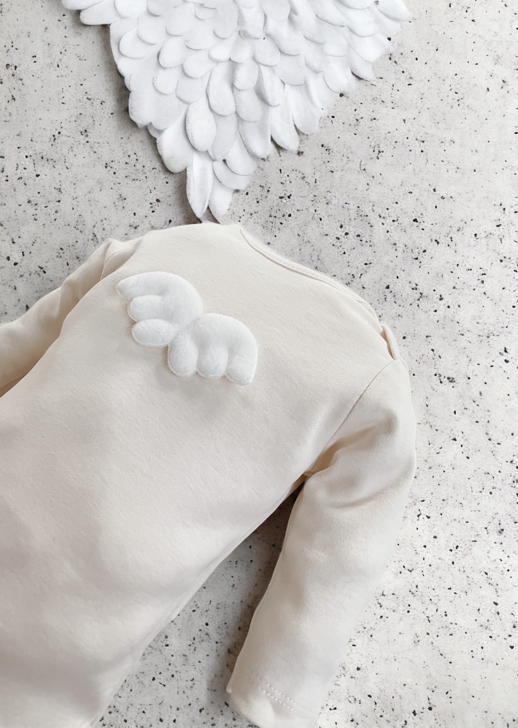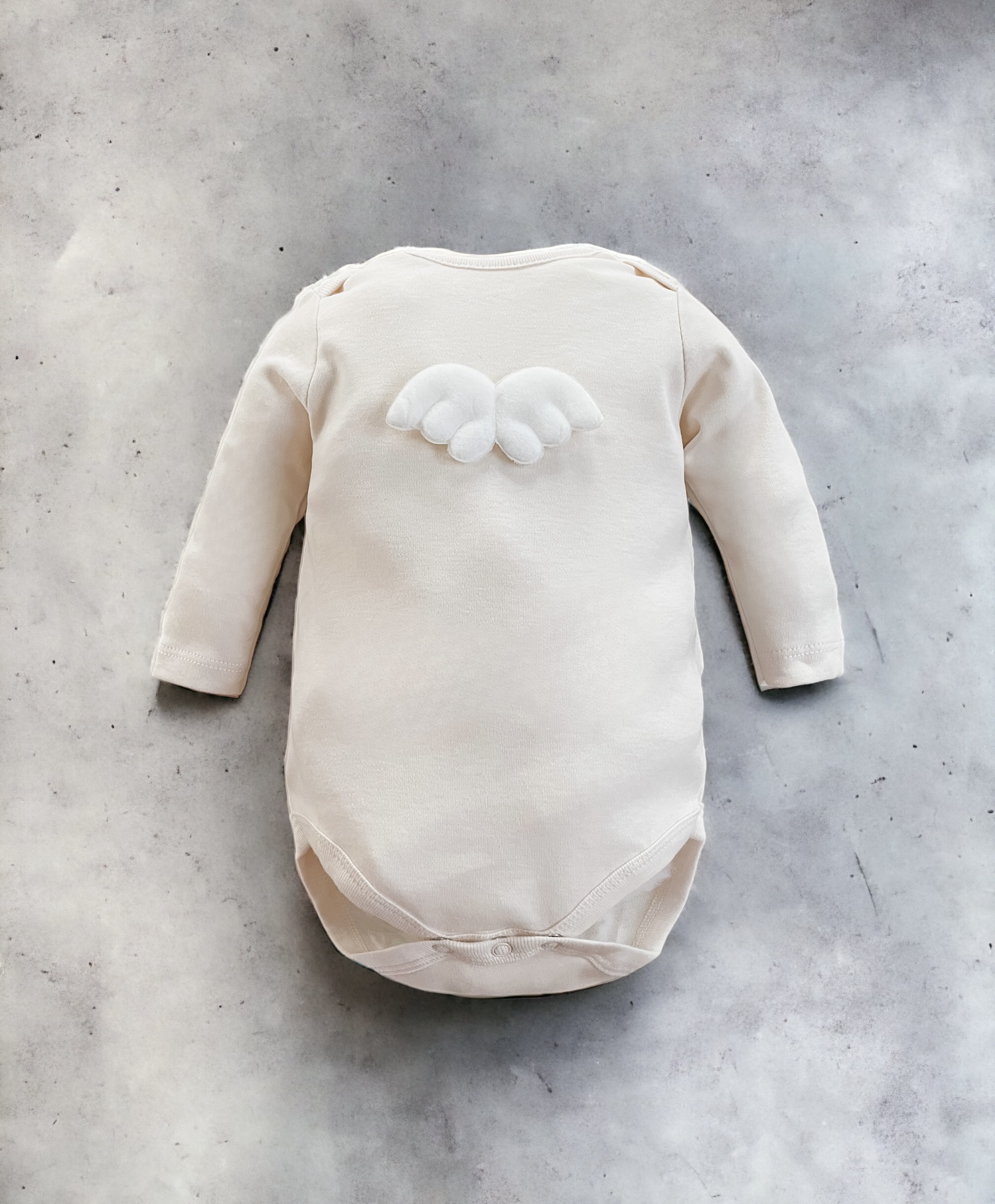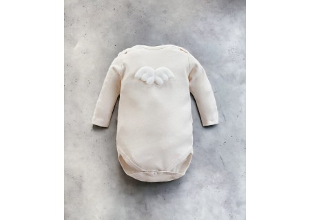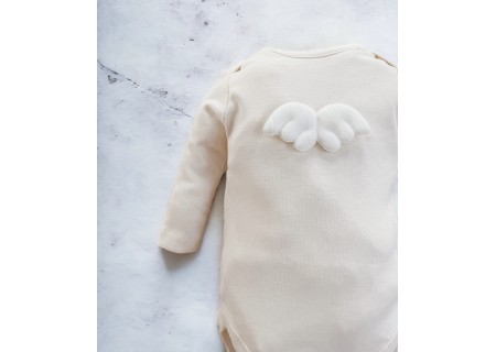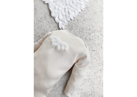 Bawełniane body z aplikacją skrzydeł anioła, zapinane w kroczku na napy.