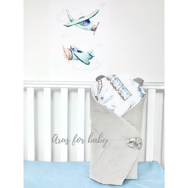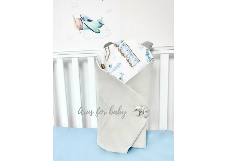 Miękki,cieplutki becik w polaczeniu tkaniny velvet oraz tkaniny bawełnianej