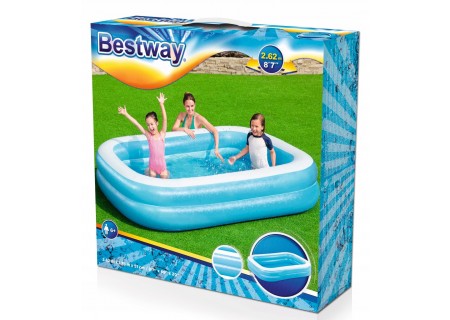 Basen dmuchany dla dzieci Bestway o wymiarach 262 x 175 x 51 cm to świetne rozwiązanie w upalne dni dla maluchów. Dwa identyczne pierścienie wyposażone w system wzajemnie połączonych dysz, dodatkowo zabezpieczone są przeciwko wydostawaniu się powietrza na zewnątrz. Produkt wykonano z mocnego materiału winylowego, posiada możliwość wypuszczenia wody w jeszcze łatwiejszy sposób dzięki zaworowi spustowemu.
