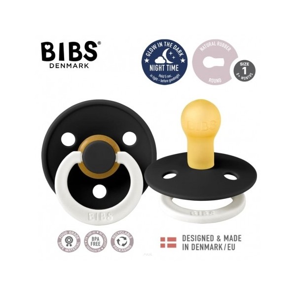 Smoczki BIBS GLOW IN DARK posiadają fluorescencyjny uchwyt świecący w ciemnościach dzięki czemu łatwo je odszukać w nocy.