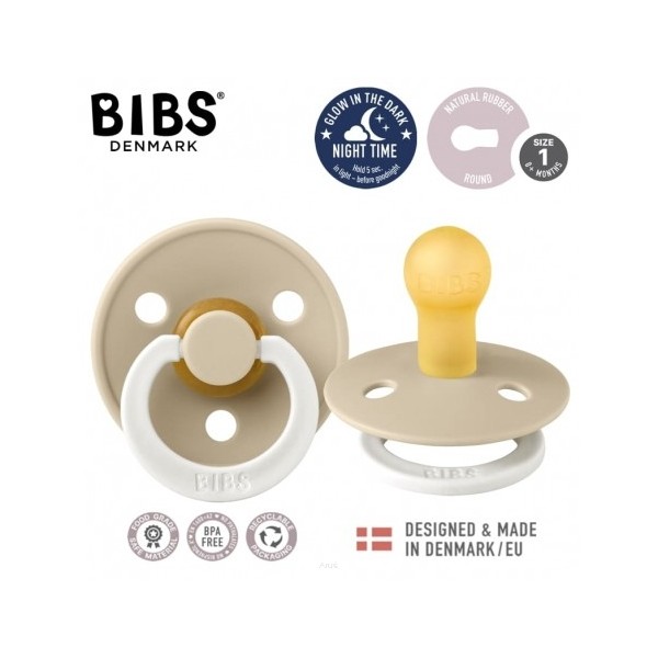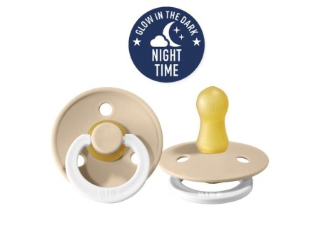Smoczki BIBS GLOW IN DARK posiadają fluorescencyjny uchwyt świecący w ciemnościach dzięki czemu łatwo je odszukać w nocy.