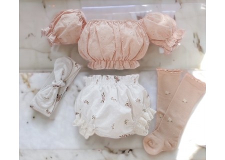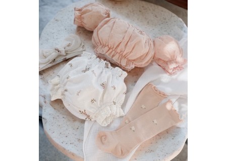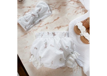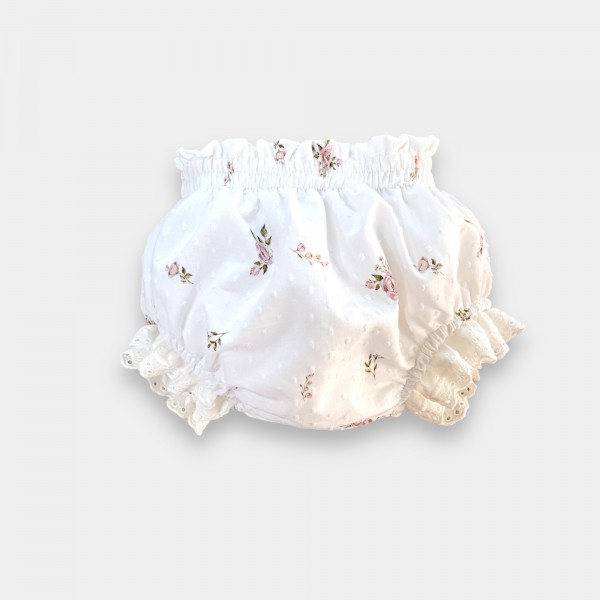Bawełniane bloomersy z haftowanymi falbankami.