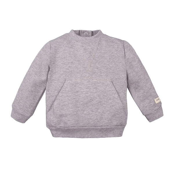 Dziecięca bluza kangurek z kolekcji "SIMPLY COMFY" uszyta z miękkiej i przyjemnej w dotyku dzianiny dresowej. Bluza wykończona jest miękkim ściągaczem. Bluza jest rozpinana na karku. Z przodu posiada naszytą kieszonkę kangurkę. Bluza dziecięca idealna do na spacery oraz zabawę na placu zabaw. Ze spodniami z tej samej kolekcji stworzy śliczny dresik.