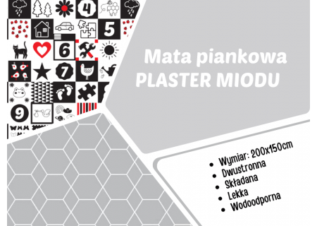 Jeżeli zależy Ci na tym, aby mata edukacyjna Twojego dziecka wyglądała estetycznie, a jej wzór był miły dla oka i nienachalny wybierz wzór PLASTRY MIODU- to absolutny hit! Minimalistyczny wzór i stonowane kolory, mata świetnie nadaje się do nowoczesnych wnętrz. Specjalnie dobrane kolory działają uspokajająco na dziecko oraz nie przytłaczają wnętrza.