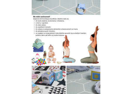 Dzięki wysokiej gęstości i elastyczności amortyzuje wszelkie upadki, na które narażony jest Twój maluch przy raczkowaniu, nauce siedzenia, chodzenia i zabawie.