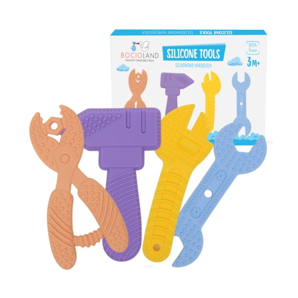 Wykonane z najwyższej jakości, bezpiecznego silikonu spożywczego, są miękkie, elastyczne i idealnie dopasowane do małych rączek, wspierając rozwój motoryki małej. Każdy z 4 gryzaków ma unikalny kształt i fakturę, stymulując zmysły i koordynację. Pastelowe kolory i bezpieczna alternatywa dla prawdziwych narzędzi sprawiają, że to idealna zabawka już od 3. miesiąca życia, która zachwyci też starsze dzieci.