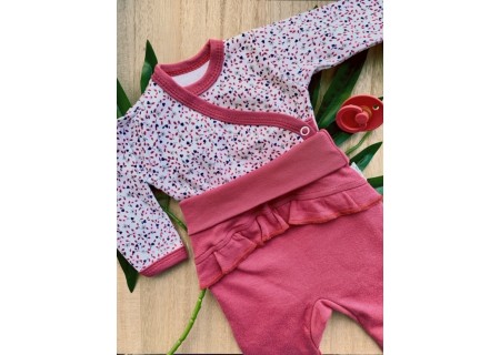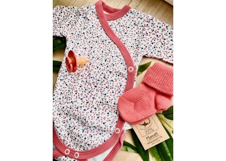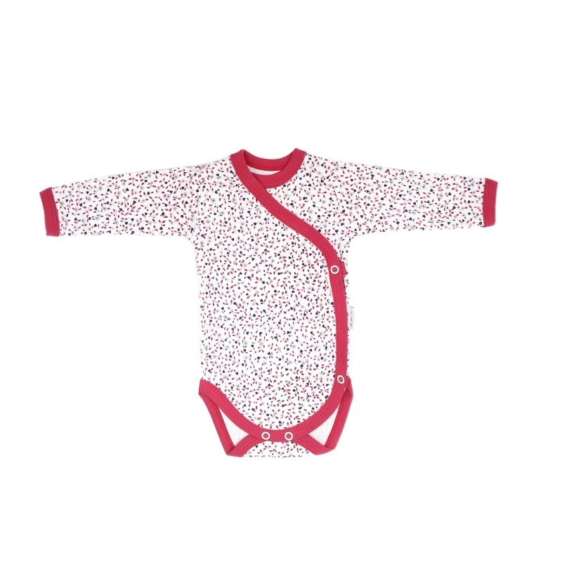 Urocze body niemowlęce, z najnowszej kolekcji polskiej firmy Mamatti. Bodziaki zostały uszyte z miękkiej 100% mięsistej bawełny . Body są rozpinane z przodu na boku, na antyalergiczne, bezniklowe napki. Po środku ubranka znajduje się trwały i bezpieczny dla delikatnej skóry nadruk wodny.