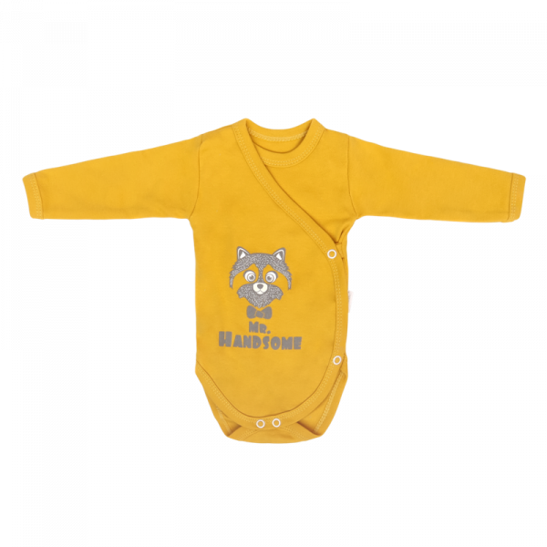 Urocze body niemowlęce, z najnowszej kolekcji polskiej firmy Mamatti. Bodziaki zostały uszyte z miękkiej 100% mięsistej bawełny . Body są rozpinane z przodu na boku, na antyalergiczne, bezniklowe napki. Po środku ubranka znajduje się trwały i bezpieczny dla delikatnej skóry nadruk wodny.
