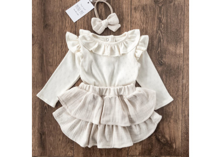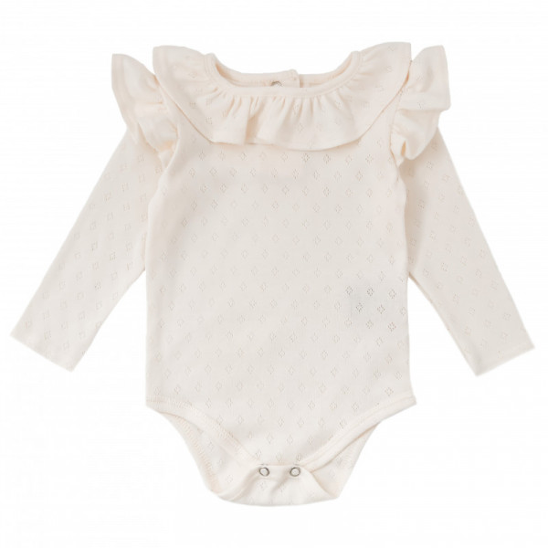 Body z falbankami z ażurowej dzianiny w kolorze śmietankowym.