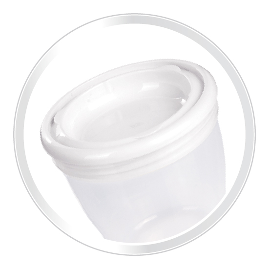 Pojemniki pozwalają na zachowanie najwyższej jakości pokarmu – zostały wykonane z bezpiecznego tworzywa sztucznego dopuszczonego do kontaktu z żywnością.