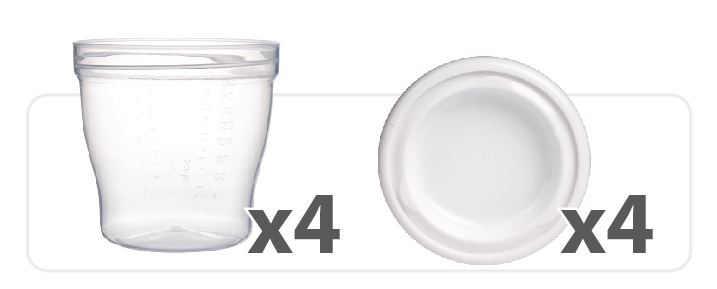 W zestawie znajdują się 4 sztuki pojemników wraz z przykrywkami. Na pojemnikach znajduje się pomocna skala.
