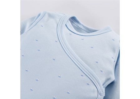 Body dziecięce rozpinane z długim rękawem z kolekcji "Good day" uszyte z miękkiej i przyjemnej w dotyku dzianiny bawełnianej. Krój umożliwia rozpięcie na całej długości, dzięki temu body jest funkcjonalne i wygodne. Body wykończone miękką lamówką. Body niemowlęce idealnie sprawdzają się w pierwszych miesiącach życia dziecka i należą do najczęściej wybieranego asortymentu przez mamy.