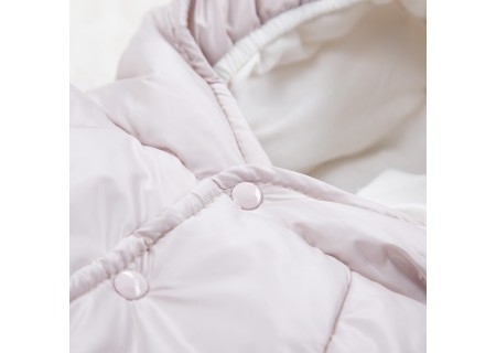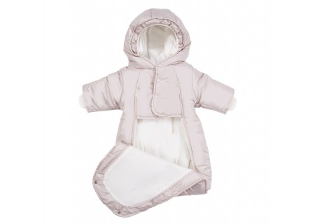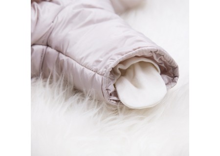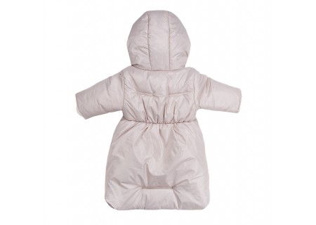 Kombinezon pasuje do gondoli, nosideł i fotelików, posiada dwa otwory na pleckach oraz jeden otwór w kroku na pasy bezpieczeństwa.