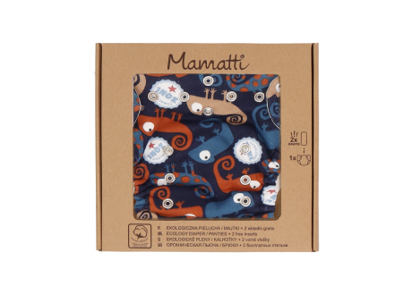 Pielucha wielorazowa MATI jest produktem wielowarstwowym posiadającym zapięcia i regulacje przez co produkt rośnie wraz z dzieckiem.