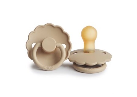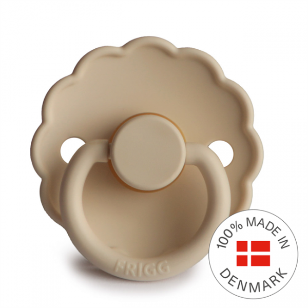 Smoczek Frigg Daisy charakteryzuje się falistą krawędzią która imituje płatki kwiatów nadając mu klasyczny ale i zarazem elegancki wygląd, który przyciągnie wzrok każdej mamy dbającej o komfort ale i wygląd wybieranych rzeczy. Smoczek został tak zaprojektowany aby  utrzymać go z dala od skóry dziecka jest zakrzywiony na zewnątrz, a także posiada otworki wspomagające przepływ powietrza przy skórze dziecka. Smoczek FRIGG Daisy, jest pełen uroku i jest dostępny w szerokiej gamie kolorystycznej.