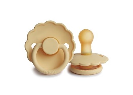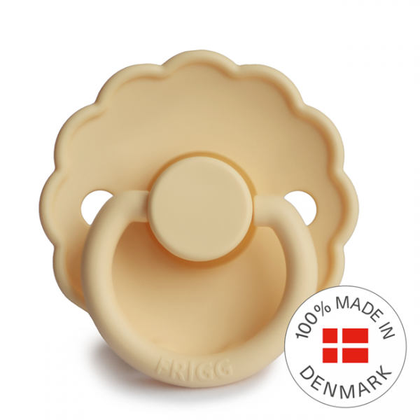 Smoczek Frigg Daisy charakteryzuje się falistą krawędzią która imituje płatki kwiatów nadając mu klasyczny ale i zarazem elegancki wygląd, który przyciągnie wzrok każdej mamy dbającej o komfort ale i wygląd wybieranych rzeczy. Smoczek został tak zaprojektowany aby  utrzymać go z dala od skóry dziecka jest zakrzywiony na zewnątrz, a także posiada otworki wspomagające przepływ powietrza przy skórze dziecka. Smoczek FRIGG Daisy, jest pełen uroku i jest dostępny w szerokiej gamie kolorystycznej.