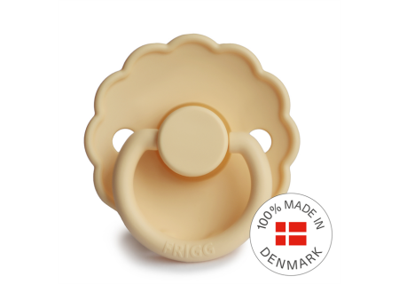 Smoczek Frigg Daisy charakteryzuje się falistą krawędzią która imituje płatki kwiatów nadając mu klasyczny ale i zarazem elegancki wygląd, który przyciągnie wzrok każdej mamy dbającej o komfort ale i wygląd wybieranych rzeczy. Smoczek został tak zaprojektowany aby  utrzymać go z dala od skóry dziecka jest zakrzywiony na zewnątrz, a także posiada otworki wspomagające przepływ powietrza przy skórze dziecka. Smoczek FRIGG Daisy, jest pełen uroku i jest dostępny w szerokiej gamie kolorystycznej.