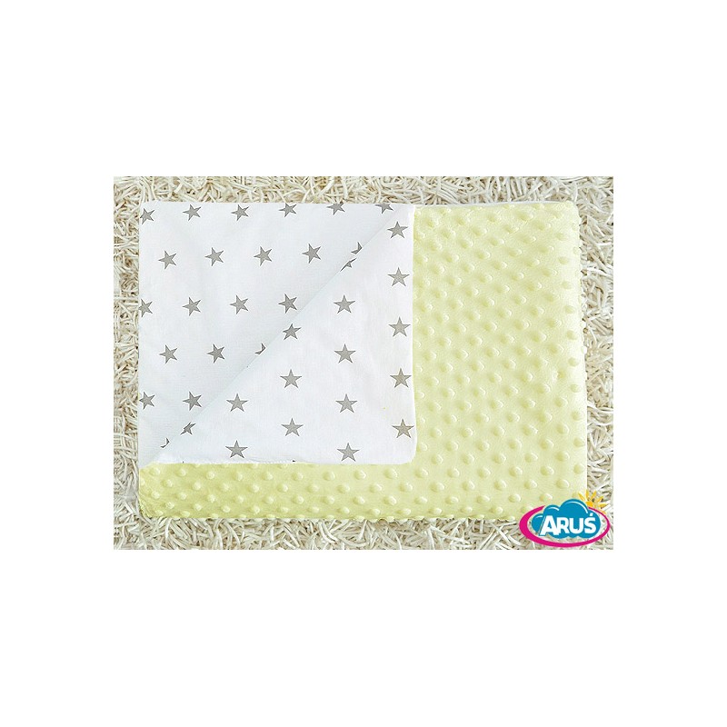 Miękki, ciepły, dwustronny MINKY z polaru Minky i bawełny – praktyczny dodatek na cały rok! Tutaj oferujemy kocyk z wzorem szarych gwiazdek na białym tle oraz z kremowym polarem Minky. Przydatny w domu i poza nim, na przykład na spacerze, w podróży. Będzie też wspaniały jako upominek!