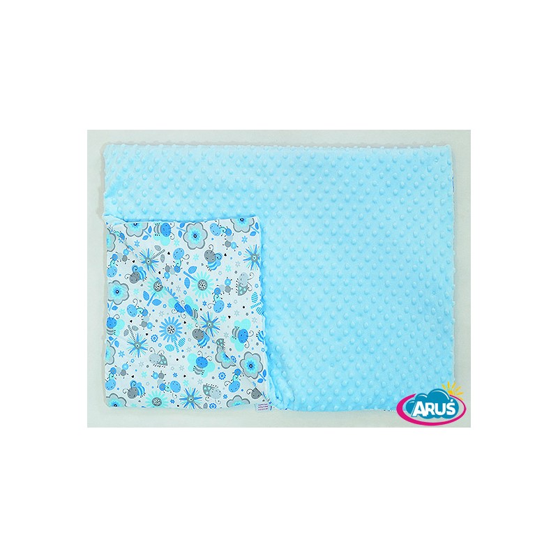 Uroczy dwustronny kocyk MINKY – z jednej strony polar Minky, z drugiej bawełna. Tutaj oferujemy wzór z niebieskimi kwiatkami na białym tle i polarem w kolorze niebieskim. Ten ciepły i miękki pledzik ma szerokie zastosowanie – można wykorzystać go do przykrycia dziecka, do wyścielenia wózka, na podłogę przy zabawie, a także jako modny dodatek w pokoju dziecięcym. Doskonały na każdą porę roku!