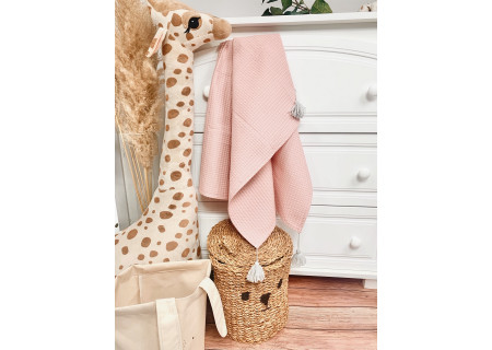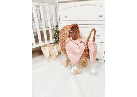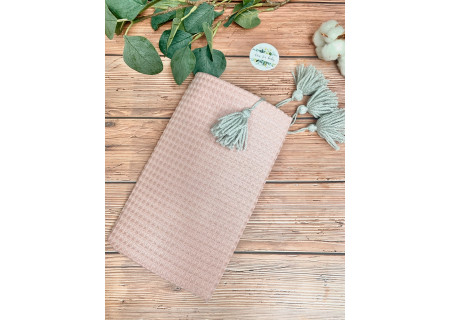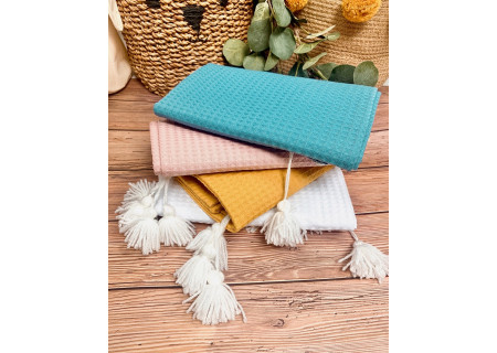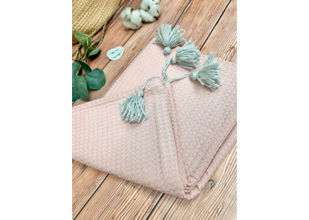 Kocyk z najnowszej kolekcji BOHO doskonale sprawdzi się w domu, w podróży i na spacerze. Wykonany jest w 100% z bawełny o wyjątkowym, wafelkowym splocie. Charakterystyczny splot sprawia, że kocyk jest przewiewny i idealnie nadaje się na letnie dni. Kocyk w swoich czterech rogach jest wykończony wykonanymi ręcznie mulinowymi pomponami.
