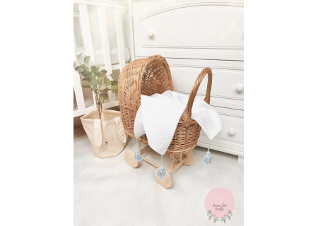 Kocyk z najnowszej kolekcji BOHO doskonale sprawdzi się w domu, w podróży i na spacerze. Wykonany jest w 100% z bawełny o wyjątkowym, wafelkowym splocie. Charakterystyczny splot sprawia, że kocyk jest przewiewny i idealnie nadaje się na letnie dni. Kocyk w swoich czterech rogach jest wykończony wykonanymi ręcznie mulinowymi pomponami.