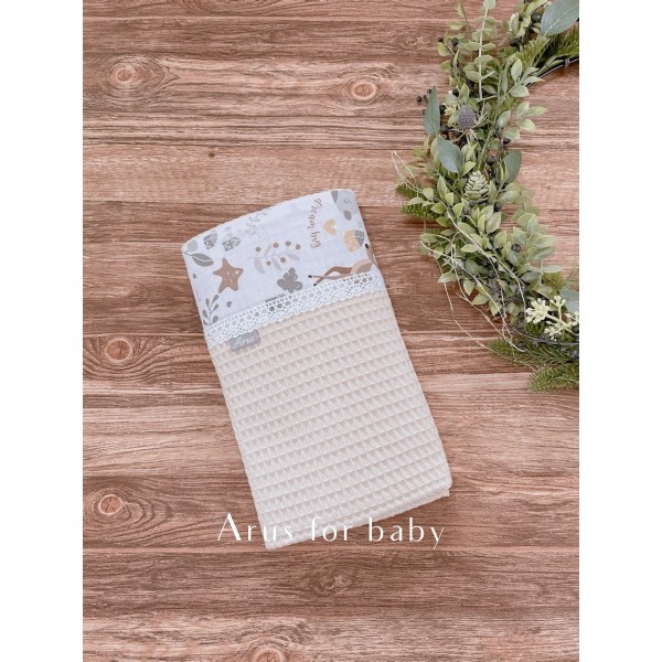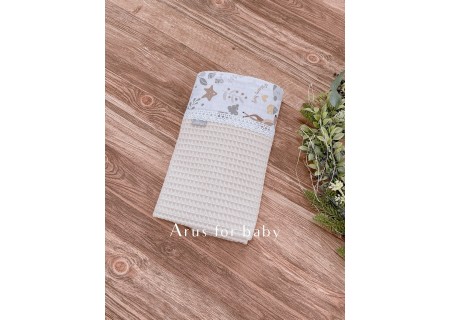 Kocyk z najnowszej kolekcji Boho doskonale sprawdzi się w domu, w podróży i na spacerze. Wykonany jest w 100% z bawełny o wyjątkowym, wafelkowym splocie. Charakterystyczny splot sprawia, że jest przewiewny i idealnie nadaje się na letnie dni. Kocyk posiada wstawkę wzorzystej bawełny wykończonej koronką w kolorze kremowym.