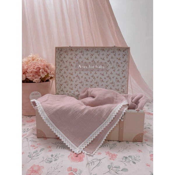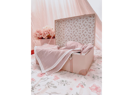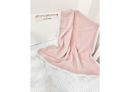 Kocyk Muślinowy 100x75 lace powder pink