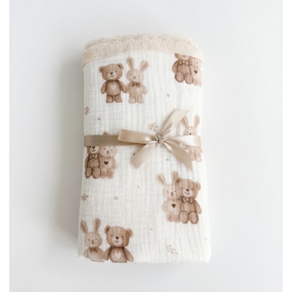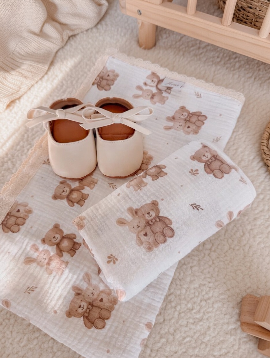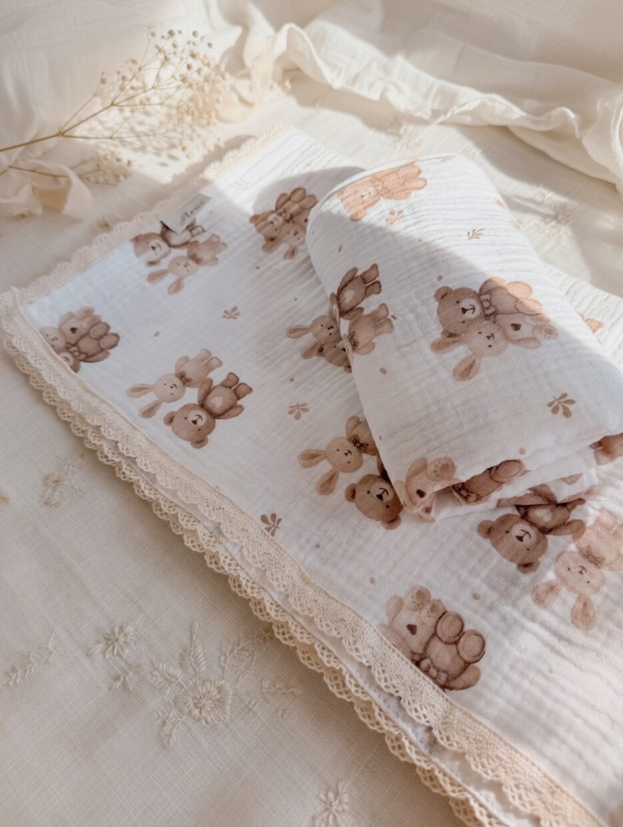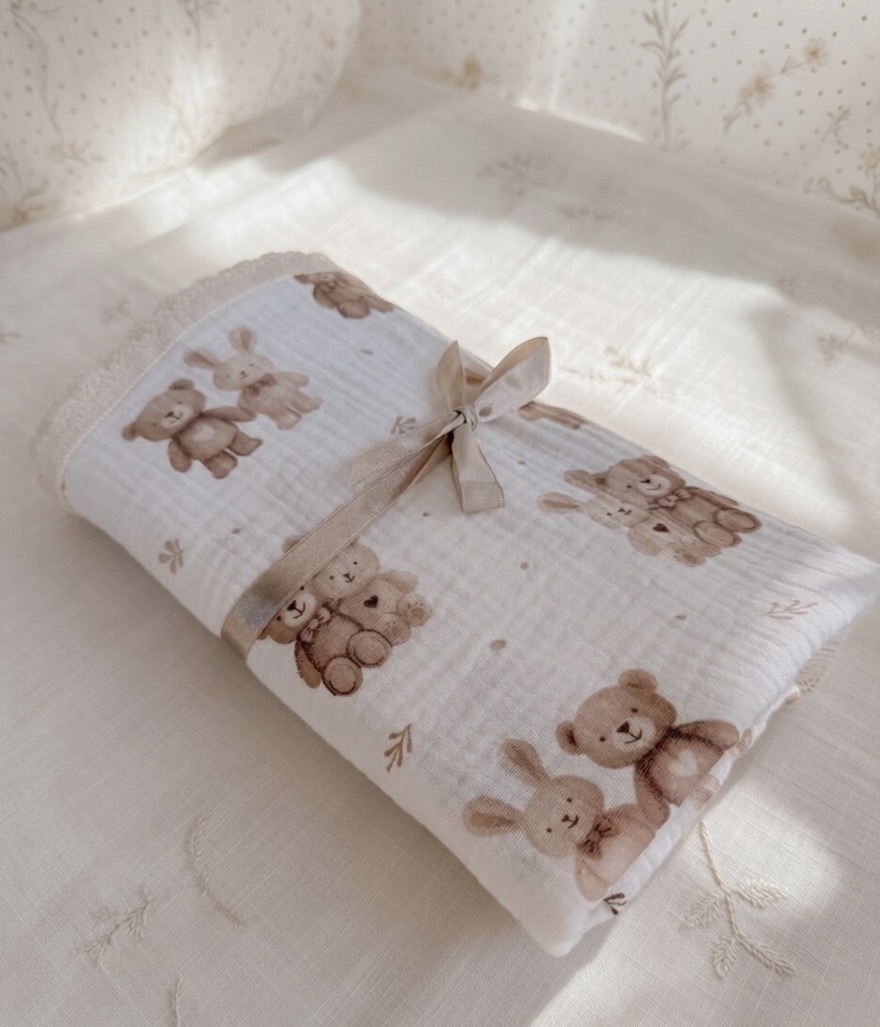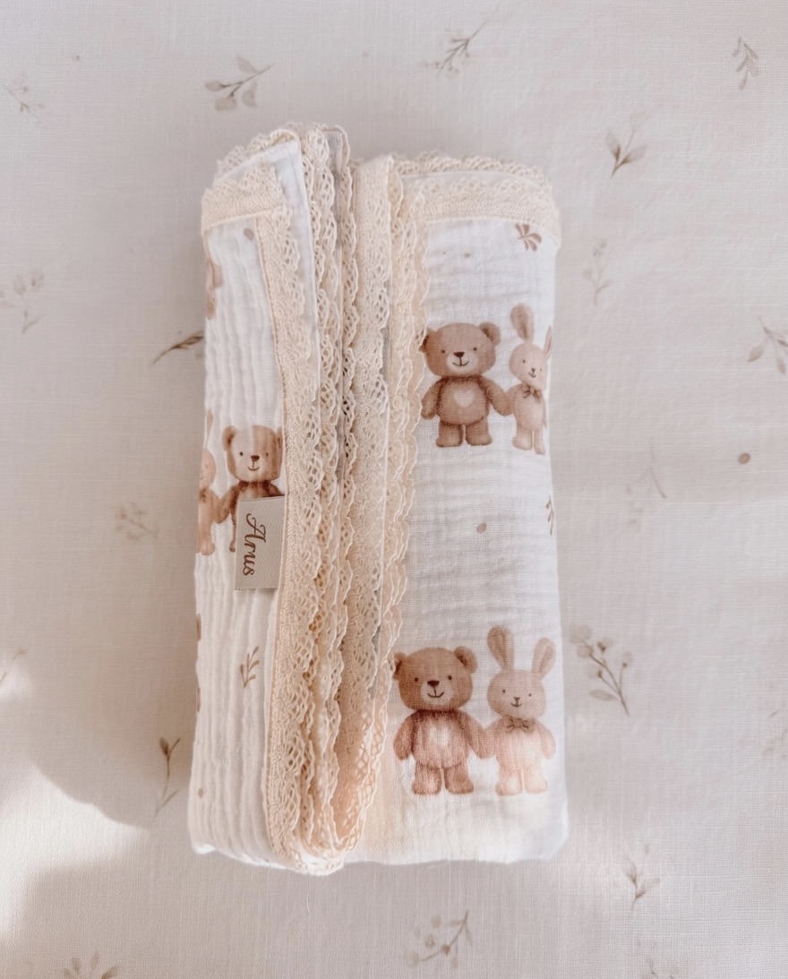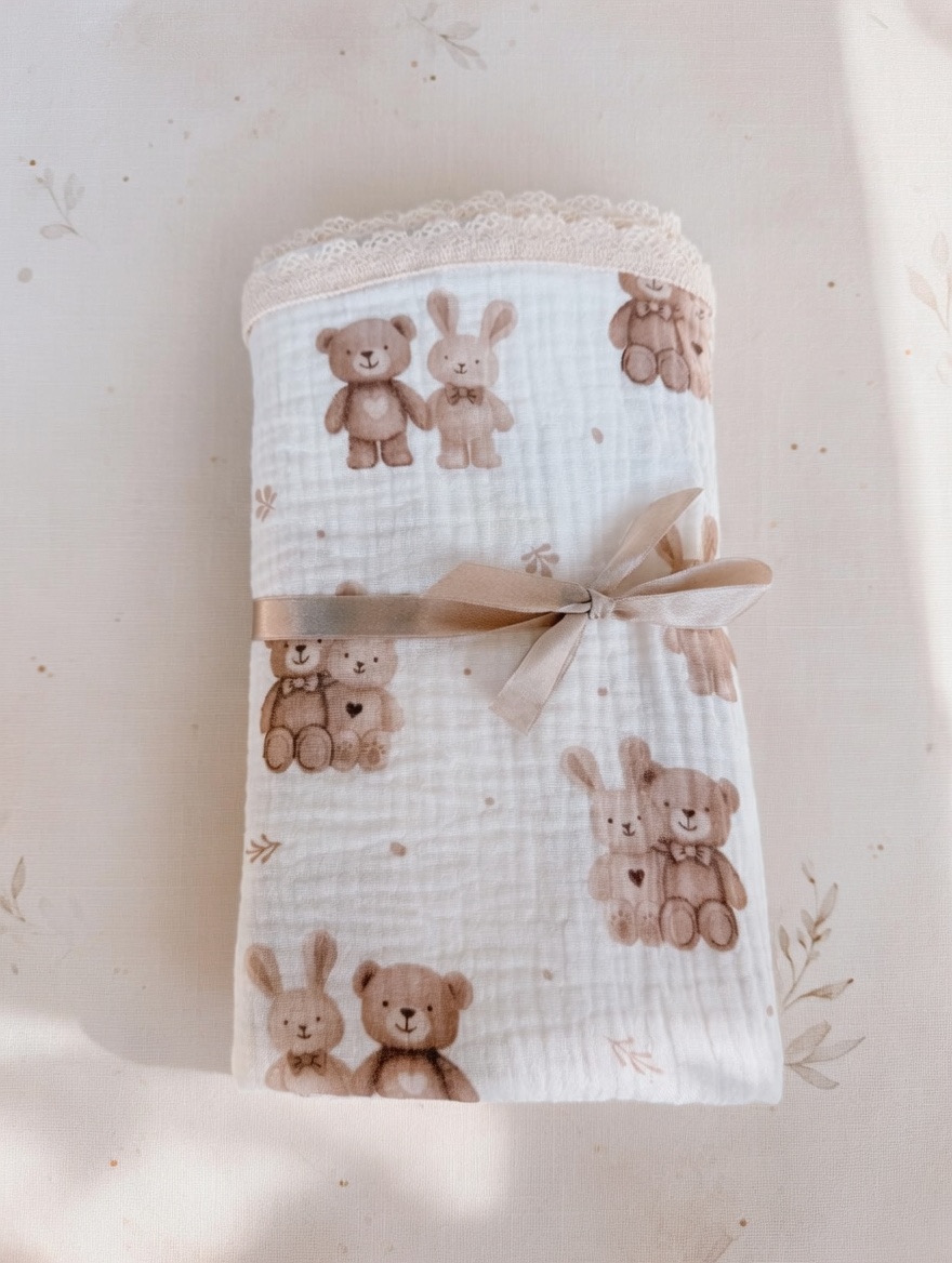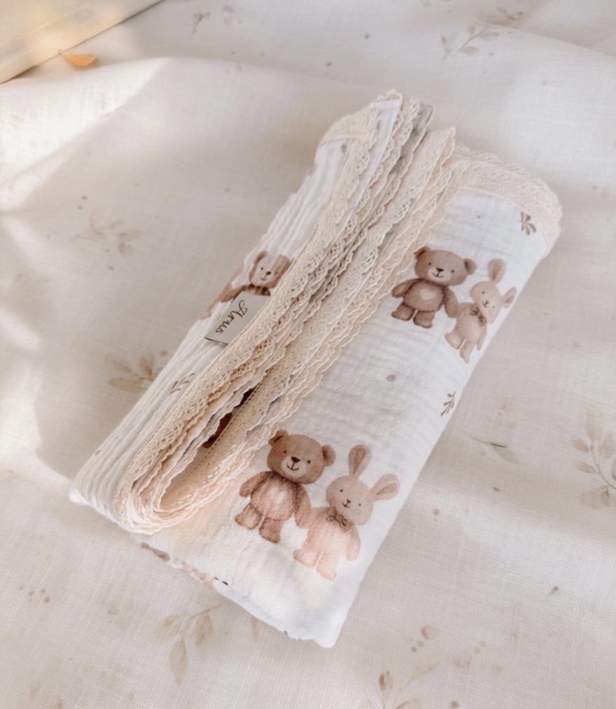 Muślin jest to dwuwarstwowa tkanina z 100% bawełny, cechująca się niezwykłą lekkością i przewiewnością.