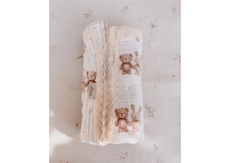 KOCYK Z KRESZOWANEJ MUŚLINY Z KORONKĄ NIEZWYKLE MIĘKKI I DELIKATNY