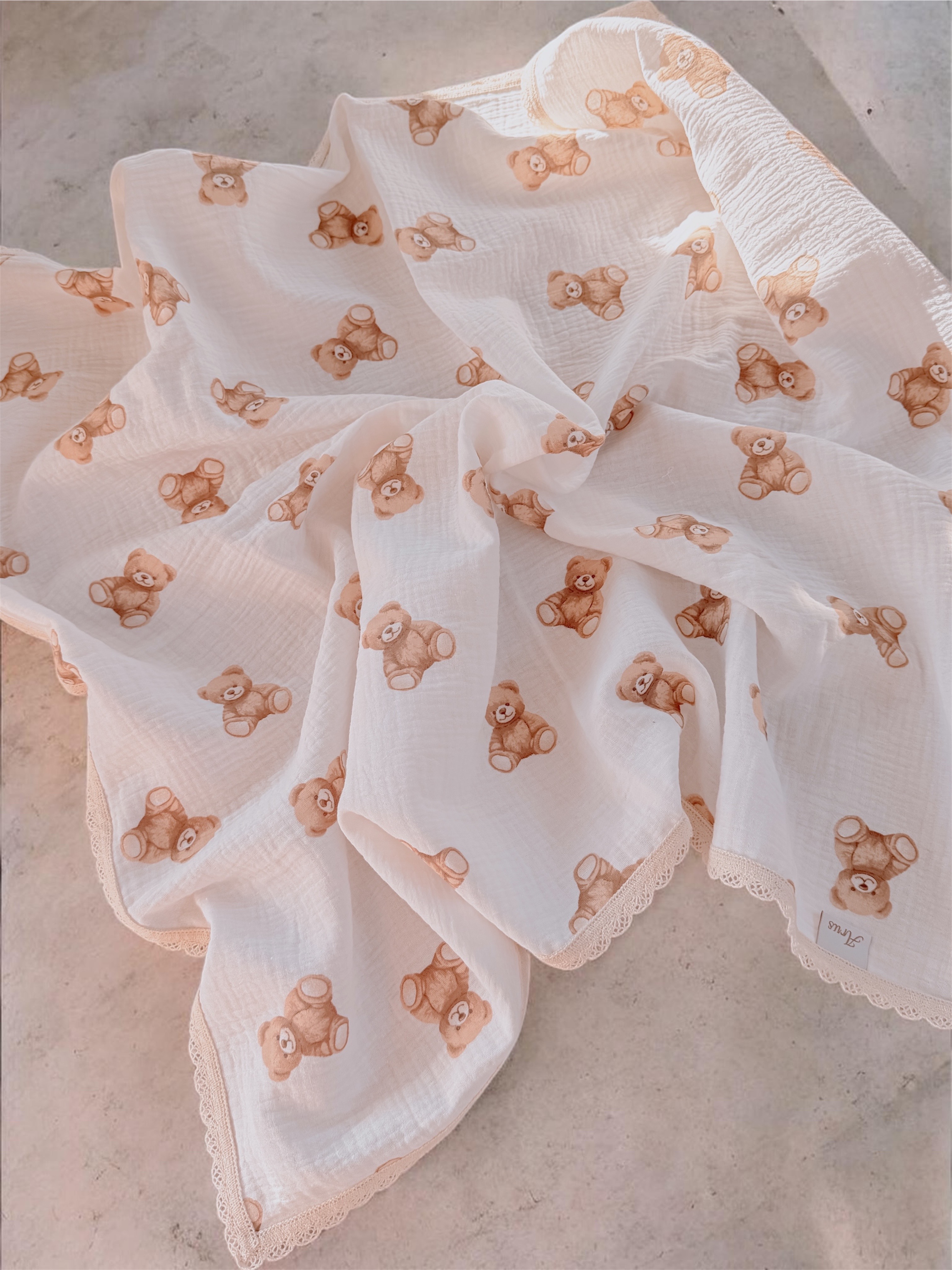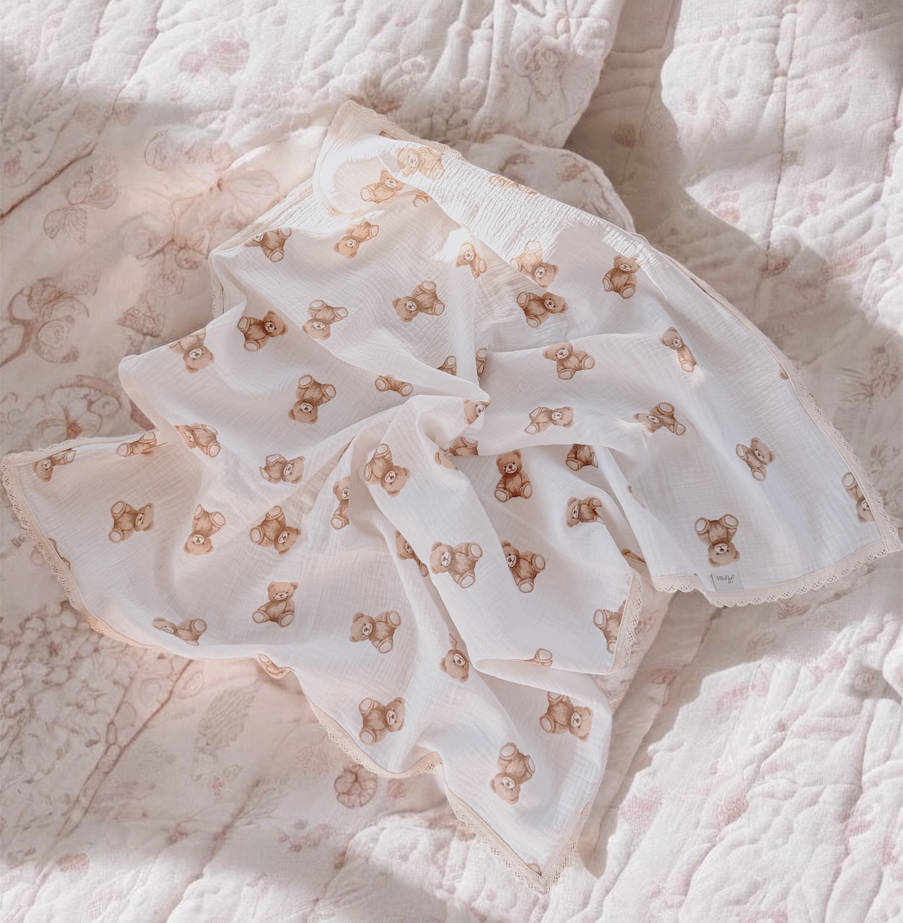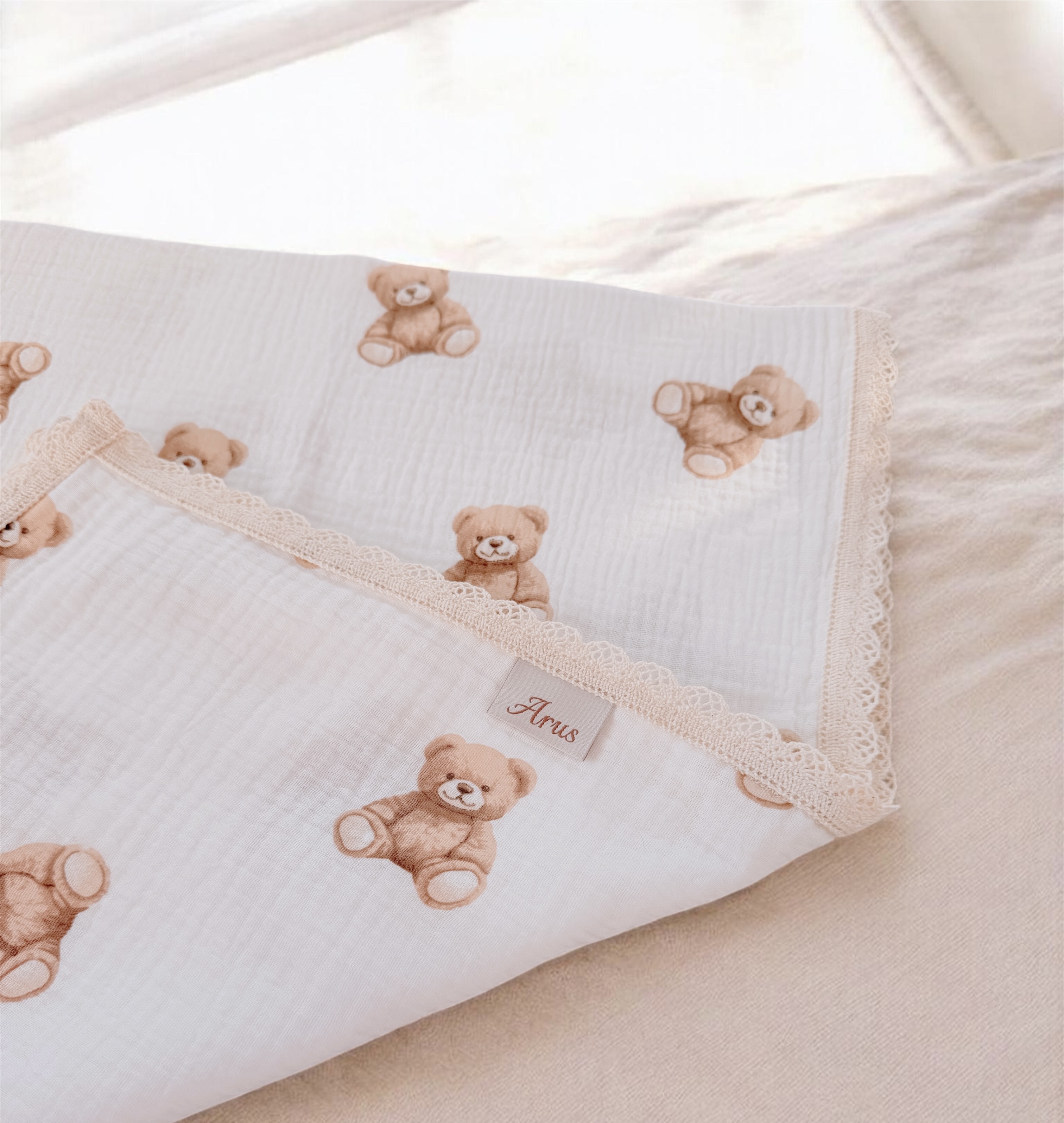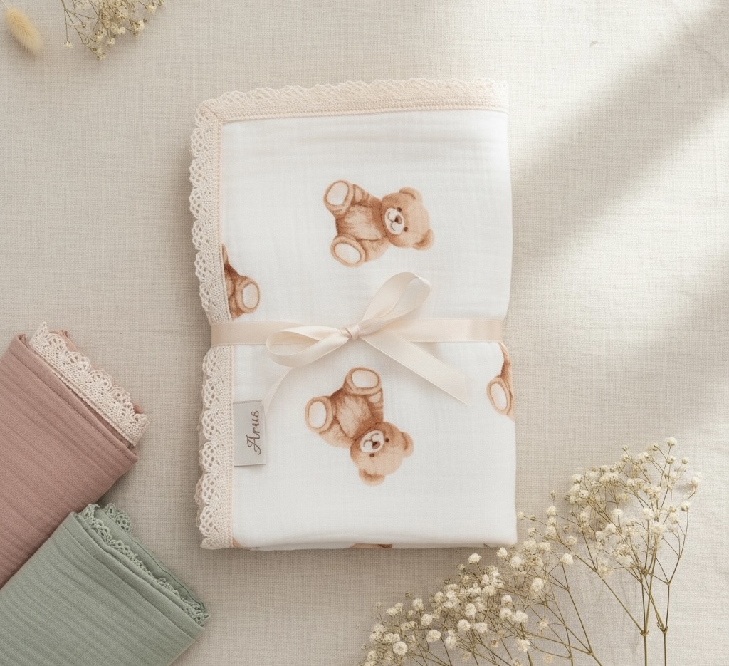 Muślin jest to dwuwarstwowa tkanina z 100% bawełny, cechująca się niezwykłą lekkością i przewiewnością.