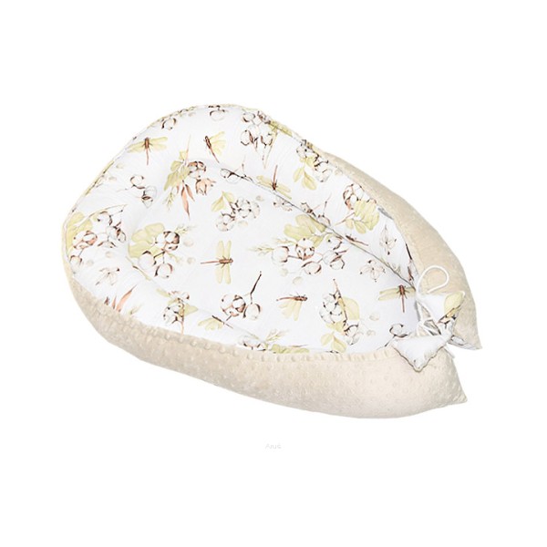 Kokon niemowlęcy otulacz dwustronny minky (beżowy +kwiat bawełny)