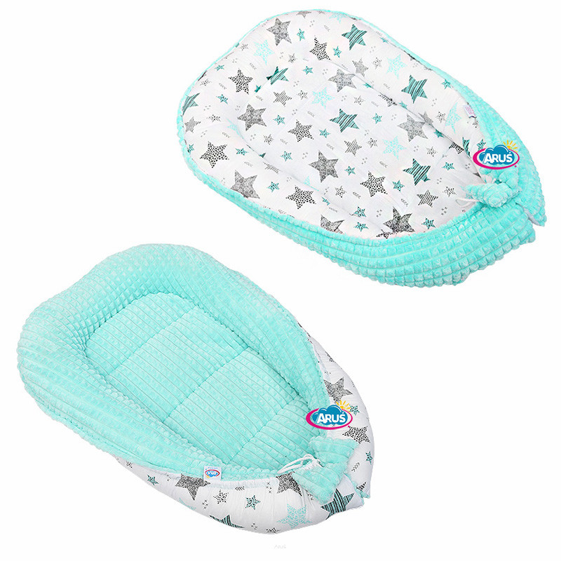 Kokon niemowlęcy otulacz dwustronny minky (mięta +gwiazdki miętowe)