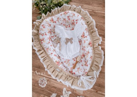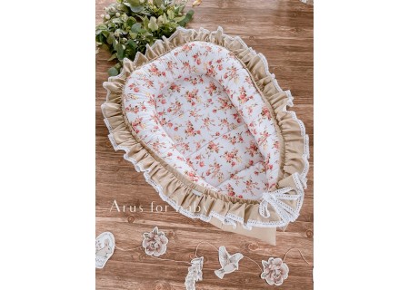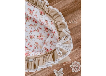 Kokon otulacz bawełniany z falbanką Romantic Roses collection- z białą koronką