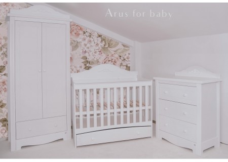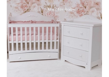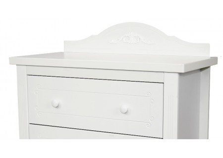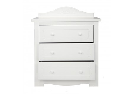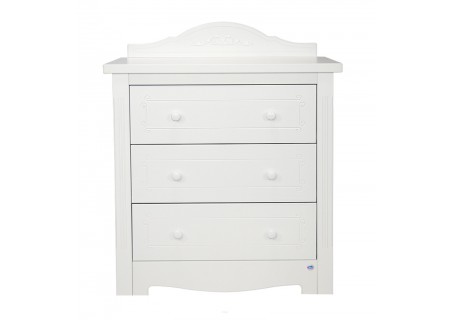 Komoda wykonana została w całości z płyty meblowej i płyty MDF w białym kolorze , stanowi idealna parę do łóżeczka AMELIA