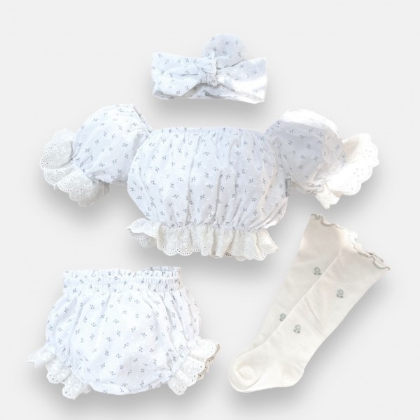 Komplet Bluebonne: Top + Bloomersy + zakolanówki