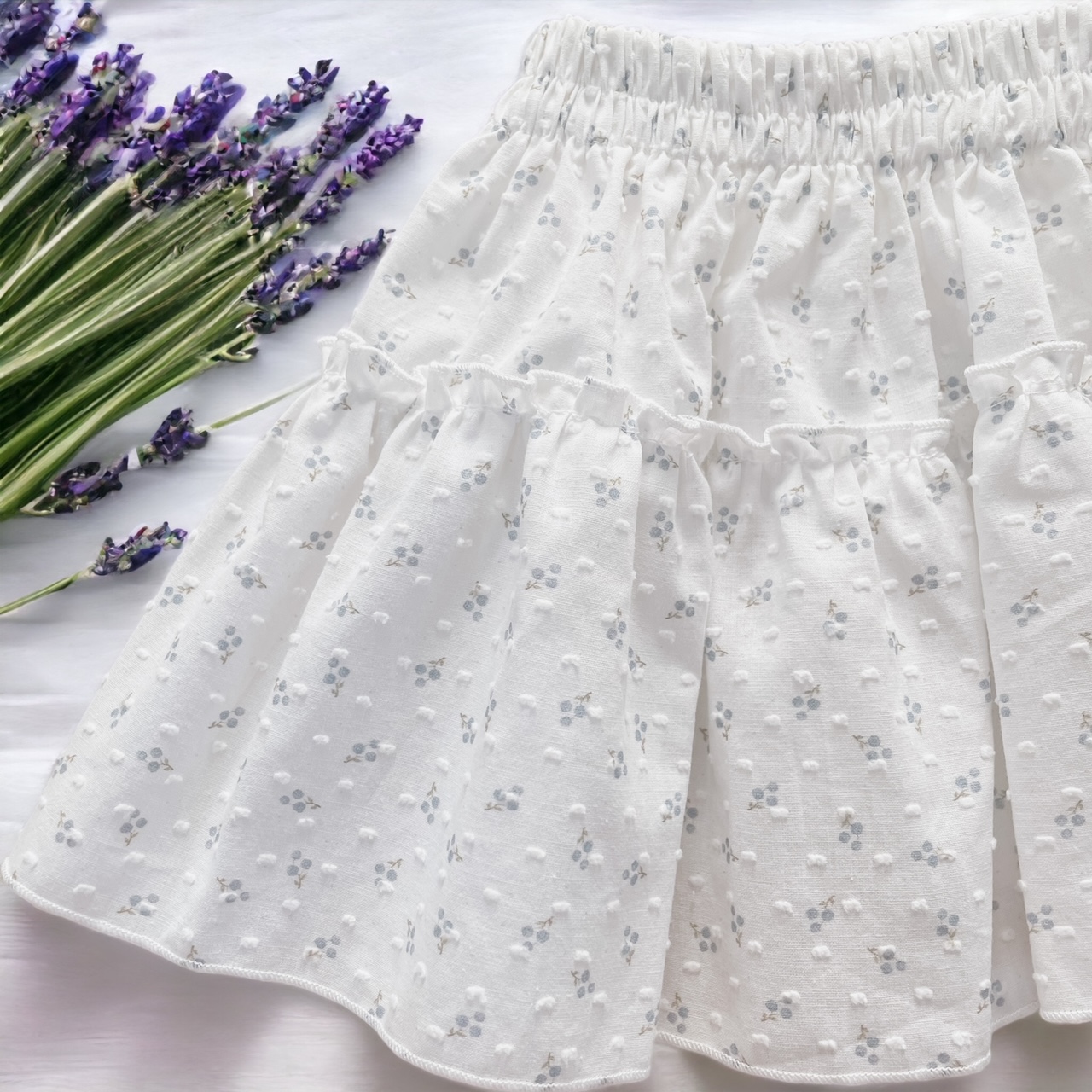 Spódnica z gumką w pasie wykonana z wysokogatunkowego materiału bawełnianego tzw Plumetti.