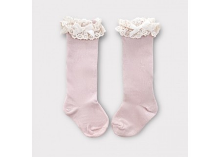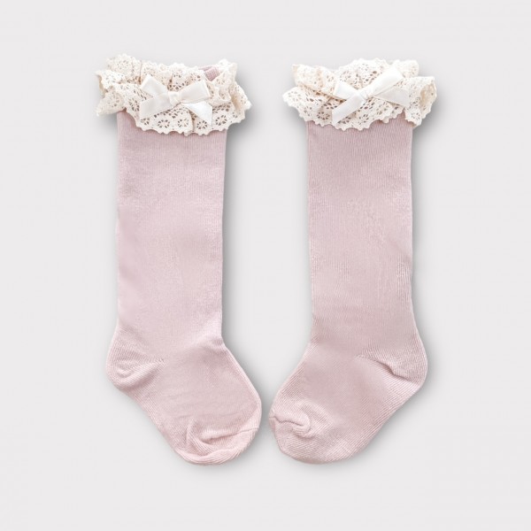 3. PODKOLANÓWKI BAWEŁNIANE Z KORONKĄ W KOLORZE PUDROWYM
