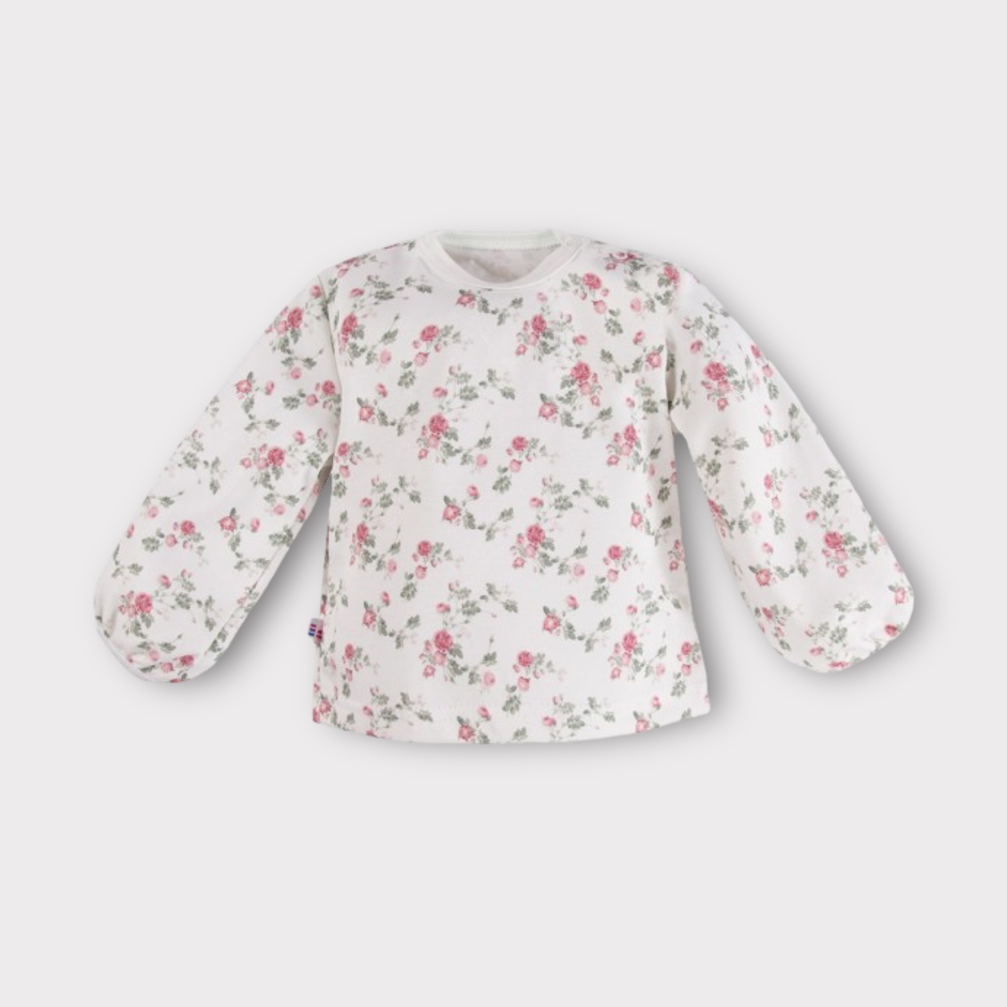 Dziecięca bluzka z w kwiatuszki z kolekcji "Roses" uszyta z miękkiej i przyjemnej w dotyku dzianiny bawełnianej. Bluzka wykończona jest miękką lamówką. Nadruk wykonany jest metodą cyfrową dzieki czemu jest delikatny i niewyczuwalny. Bluzka jest rozpinana na ramionku do rozmiaru włącznie 80. Elementem ozdobnym są bufiaste rękawy.