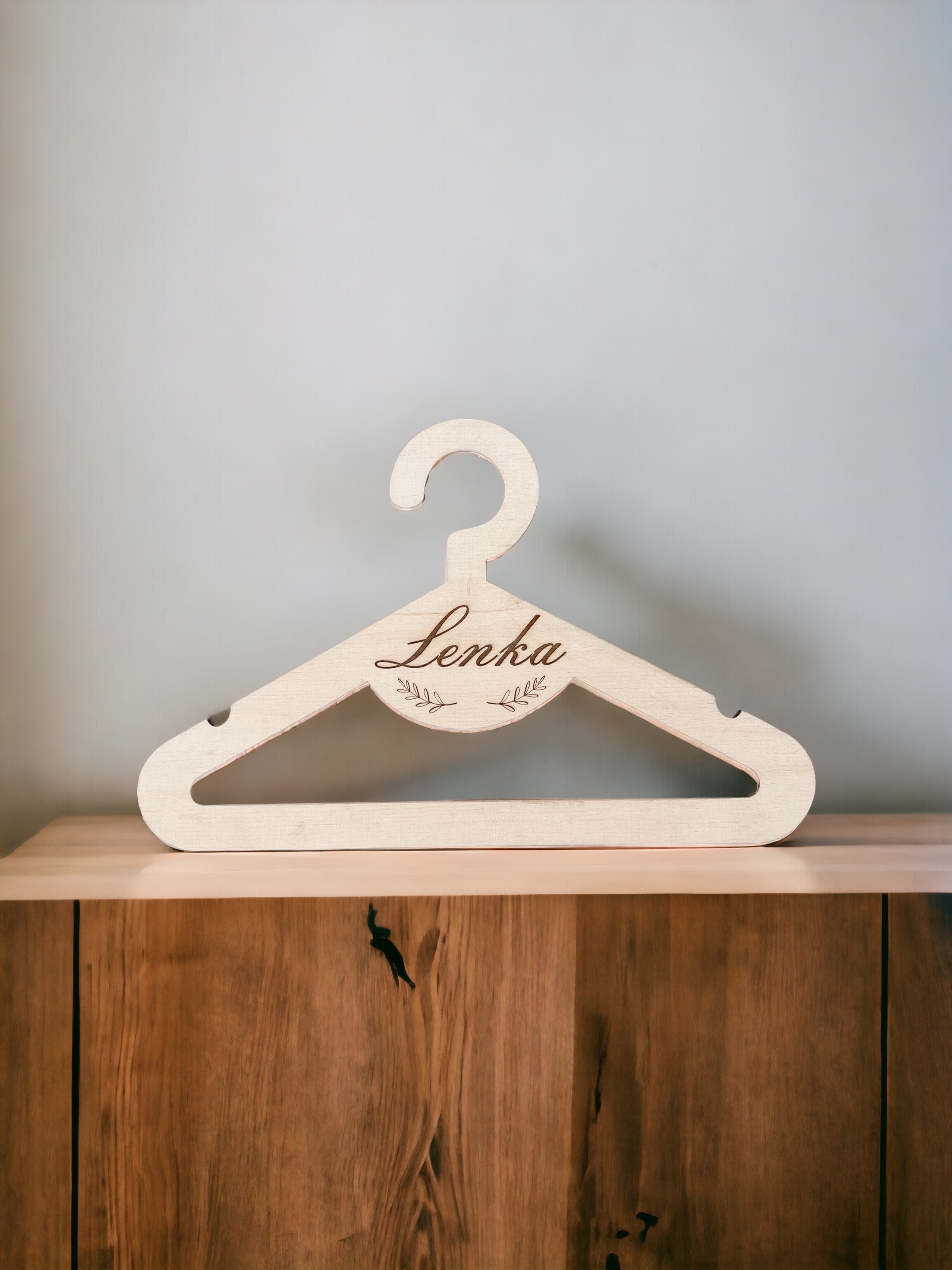 Drewniany wieszak ze sklejki z personalizowanym grawerem.