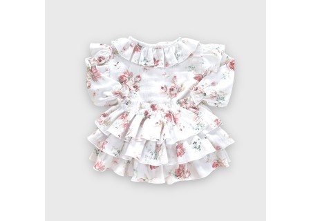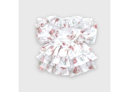 1. Muślinowa koszula ozdobiona falbankami z nowej kolekcji, uszyta ze 100% muślinu bawełnianego , z tyłu zapinana na drewniane guziczki. Niezwykle miękka w dotyku i komfortowa w noszeniu.