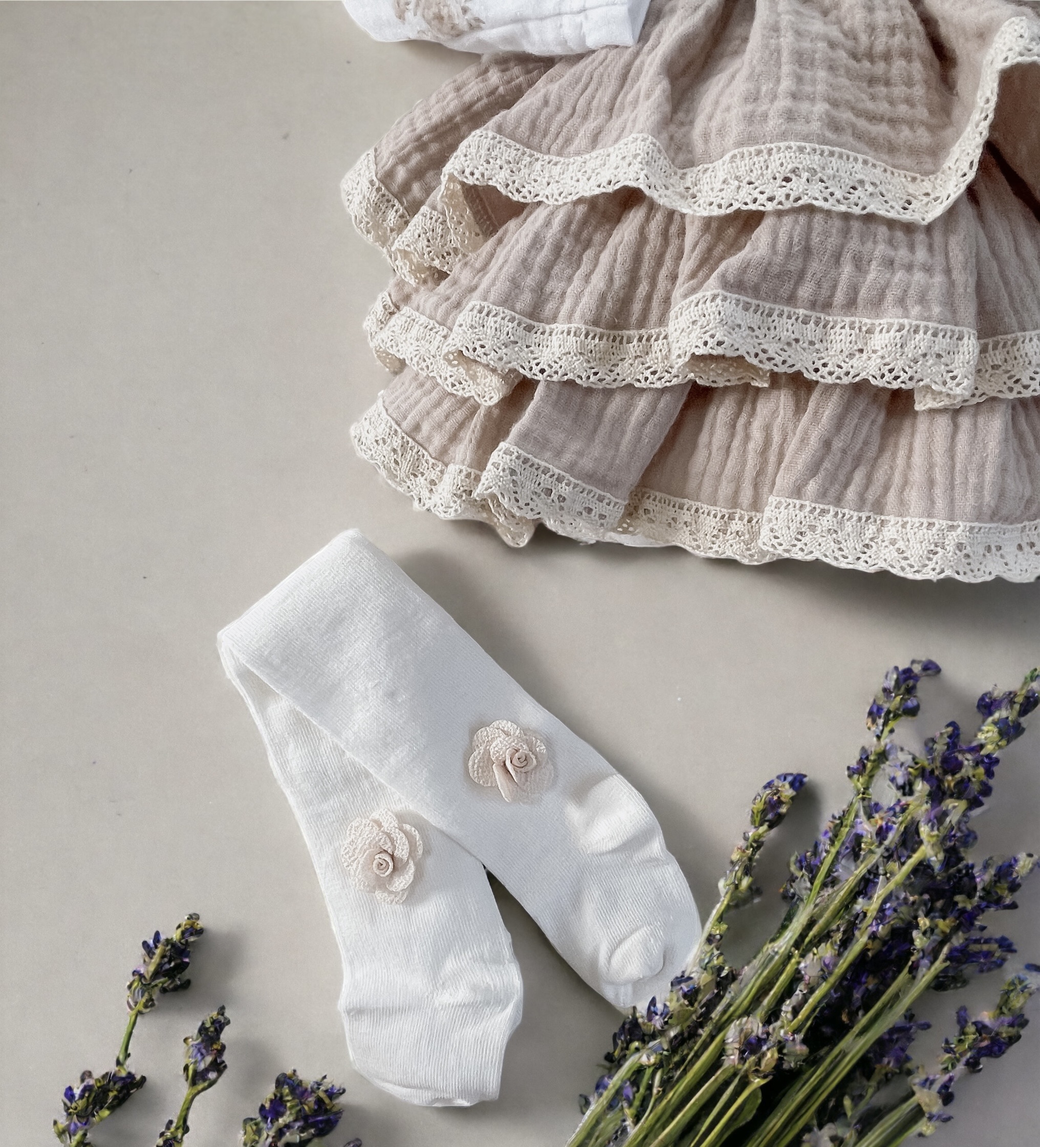 Skład : muślin bawełniany double gaze 100% , bawełniana koronka