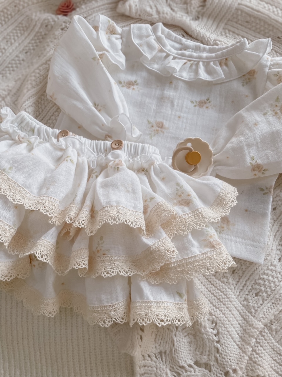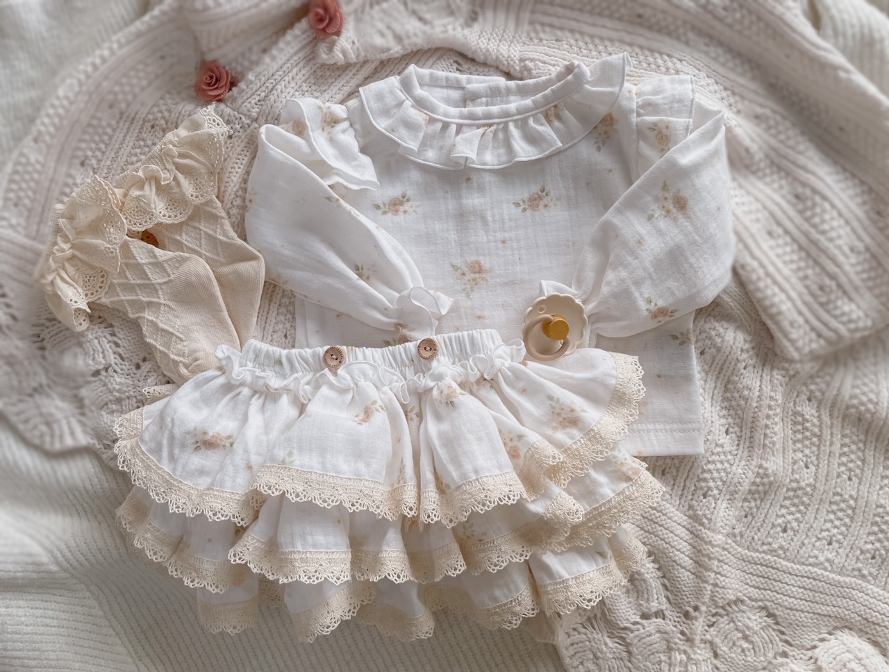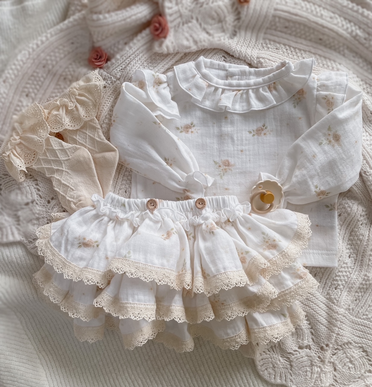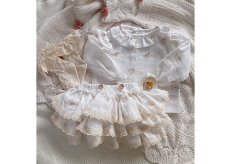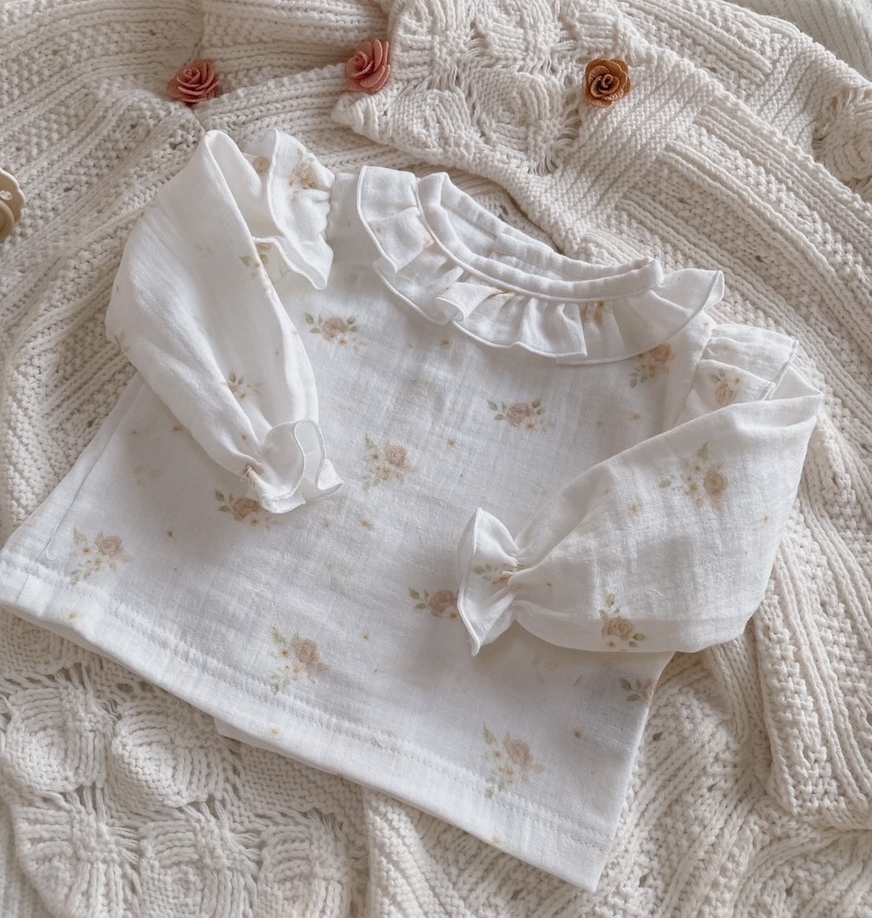 Koszula muślinowa Pastel Roses z falbanką