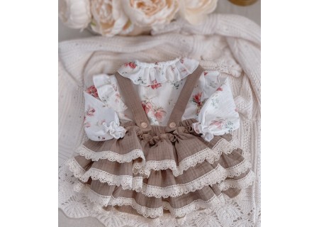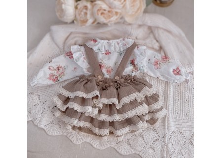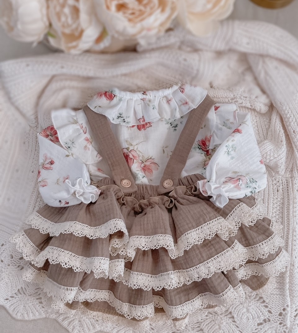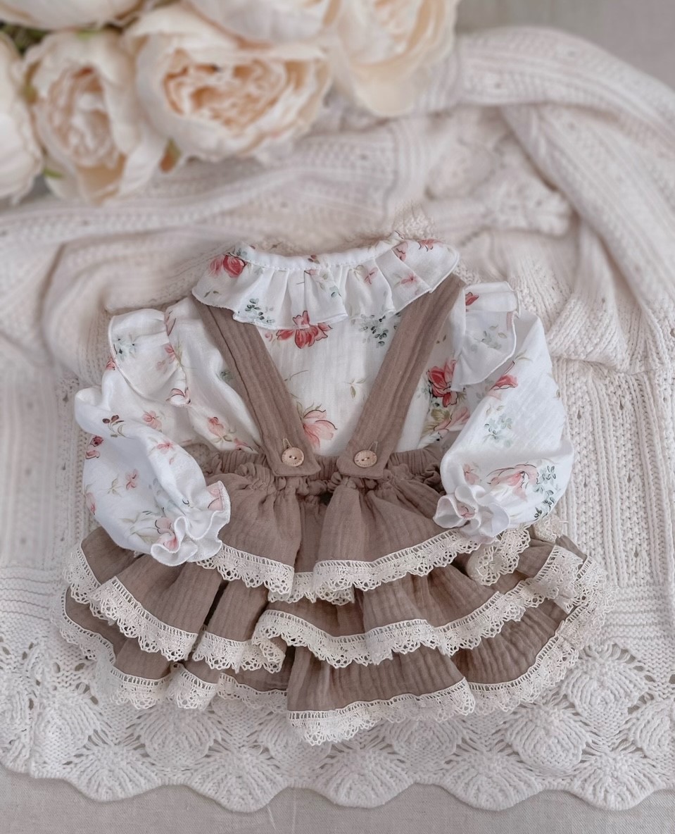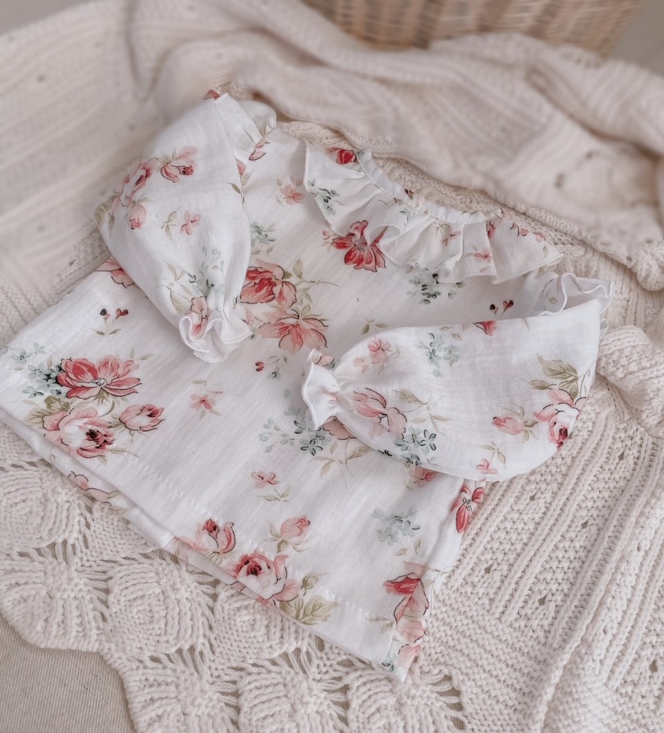 Muślinowa koszula ozdobiona falbankami z nowej kolekcji, uszyta ze 100% muślinu bawełnianego , z tyłu zapinana na drewniane guziczki. Niezwykle miękka w dotyku i komfortowa w noszeniu.